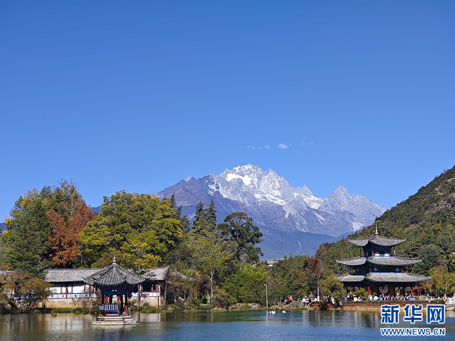 遠眺玉龍雪山壯景(2023年11月25日攝)。新華網發(和潤仙 攝)