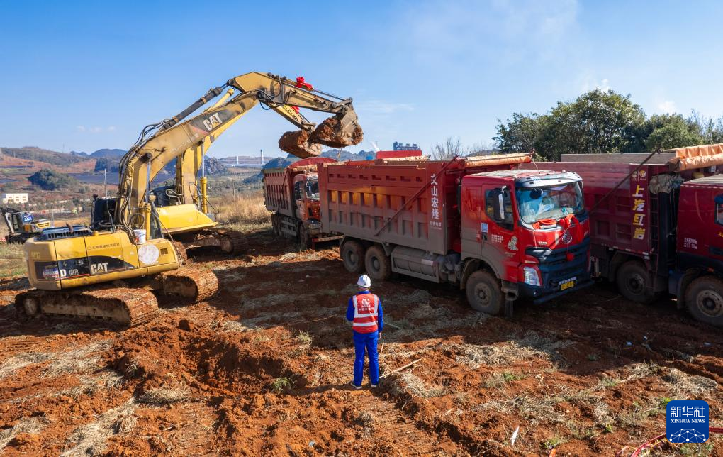 這是1月30日在云南文山拍攝的文蒙鐵路項目施工現場。