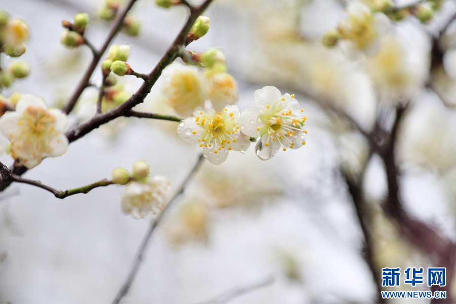 雨水打濕后的梅花(1月26日攝)。新華網發(吳再忠 攝)