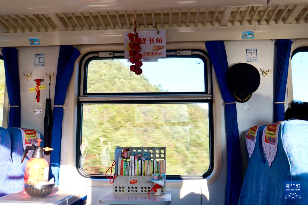 2月1日,5652次列車上的讀書角。(王賢思 攝)