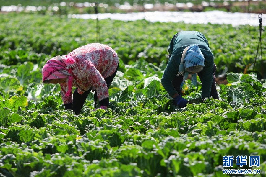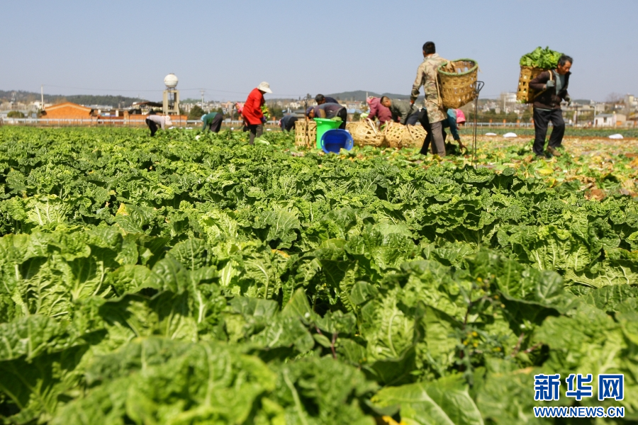 春節臨近,云南省曲靖市沾益區西平街道的菜農忙著采收成熟的蔬菜,供應節前市場。新華網發(楊俊鵬 攝)