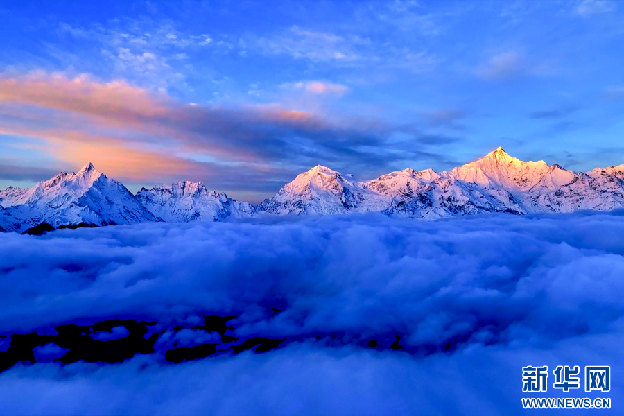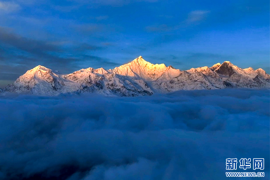 云海之上的梅里雪山“日照金山”盛景(2月4日攝)。新華網發(李春雷 攝)