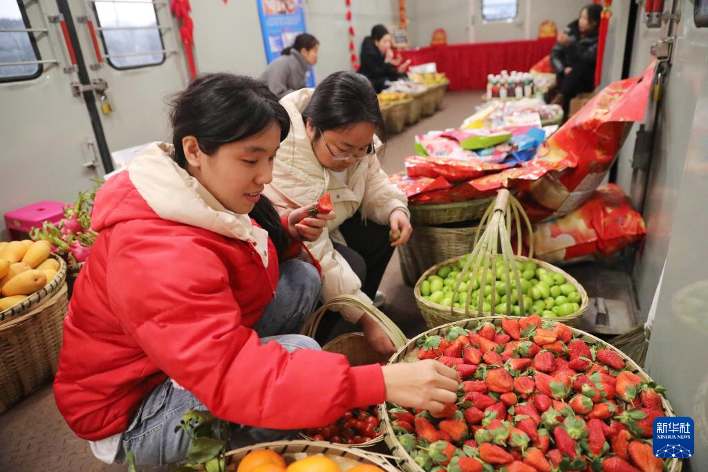 春節臨近,家家戶戶忙著采買年貨。中國鐵路昆明局集團有限公司在云南昆明至元謀西的公益性“慢火車”7466/5次列車上辦起了年貨街。