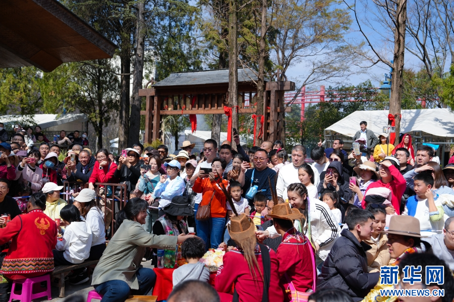 傈僳族拜年現場游人如織(2月15日攝)。新華網發(云南民族村供圖)