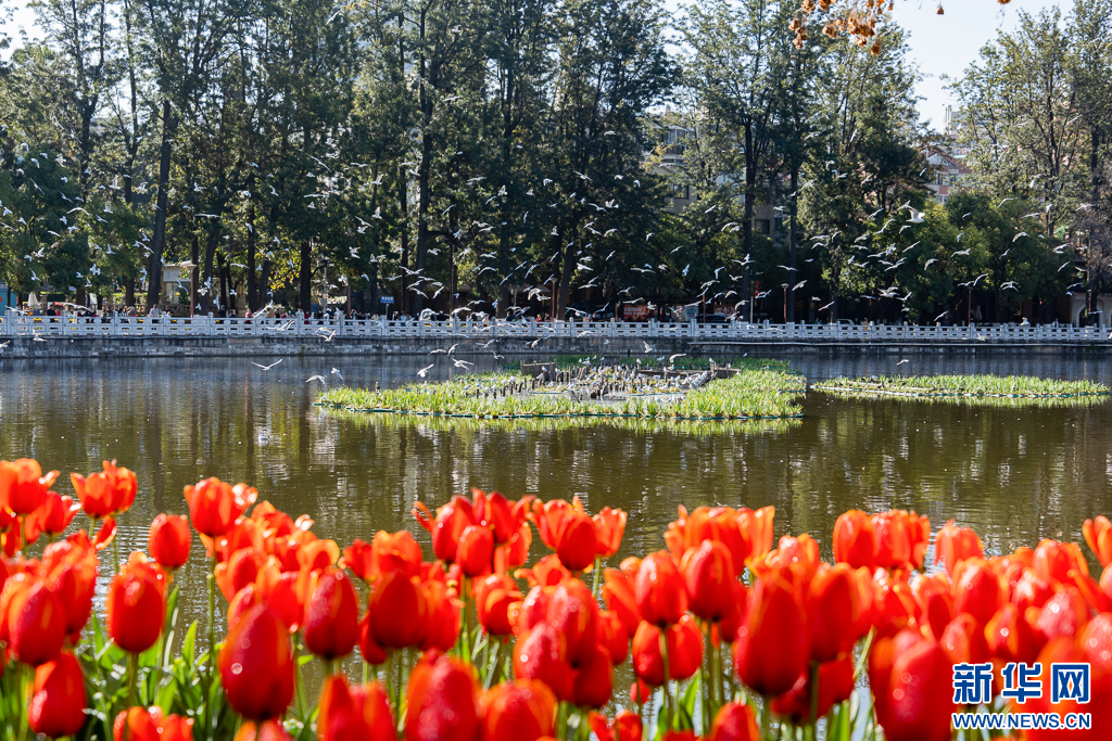 近日,云南省昆明市翠湖公園的郁金香競相綻放,吸引不少游客前來觀賞游覽。(完)