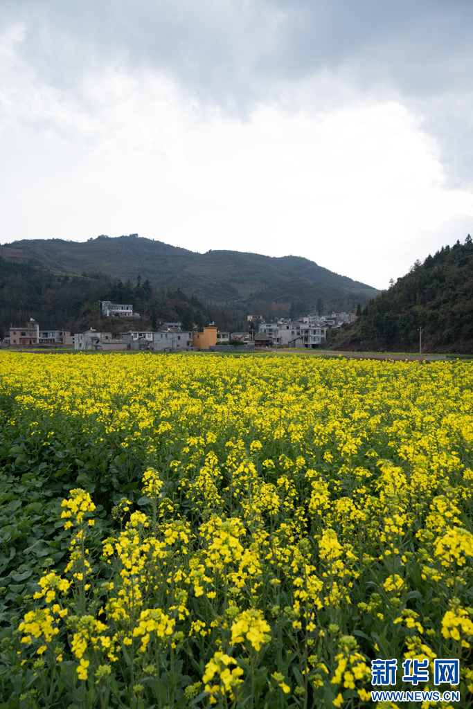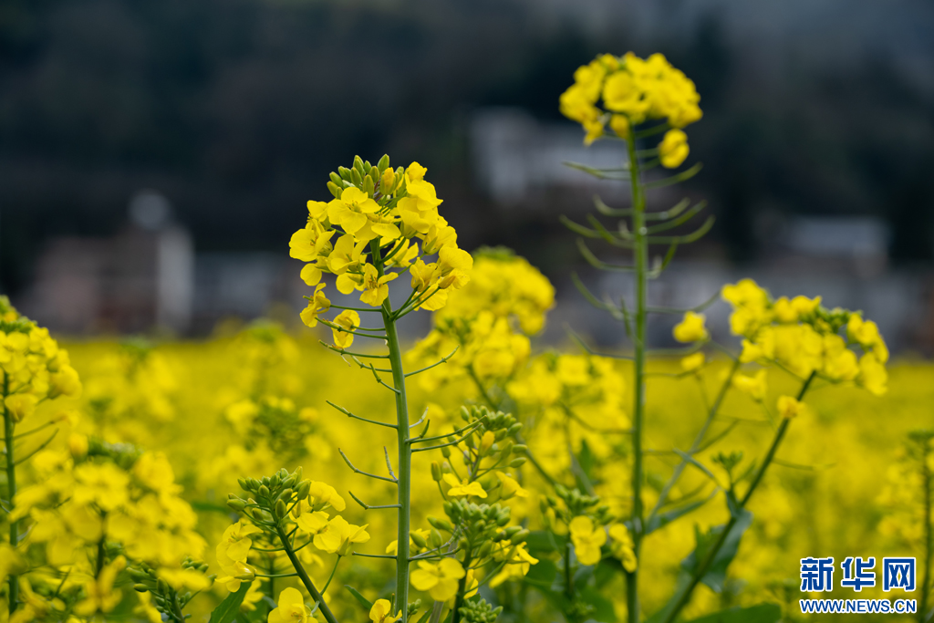 被油菜花環繞的村莊(2月12日攝)。新華網發(劉起 攝)