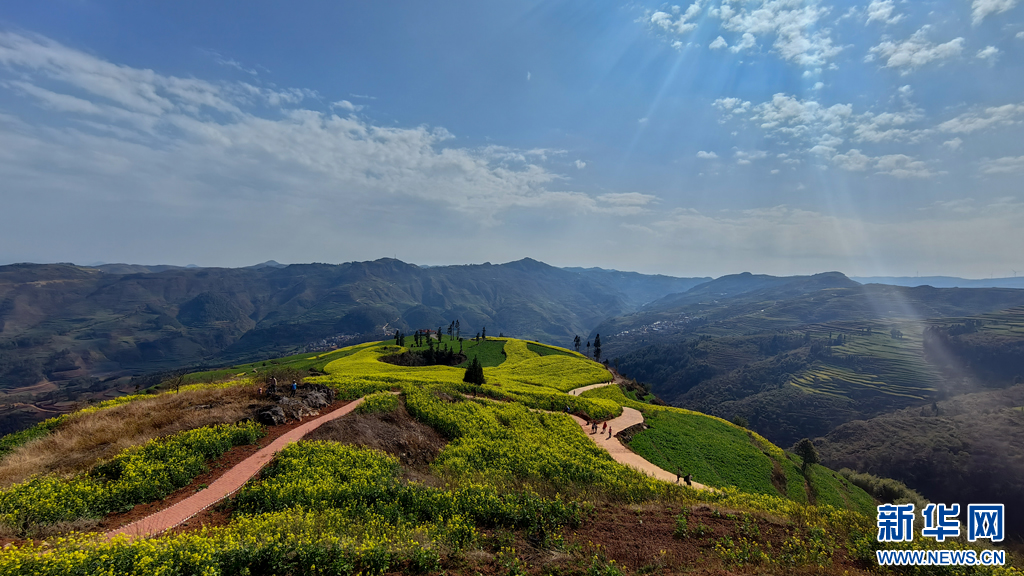 羅平縣馬街鎮阿市村的油菜花(2月12日攝)。新華網發(劉起 攝)
