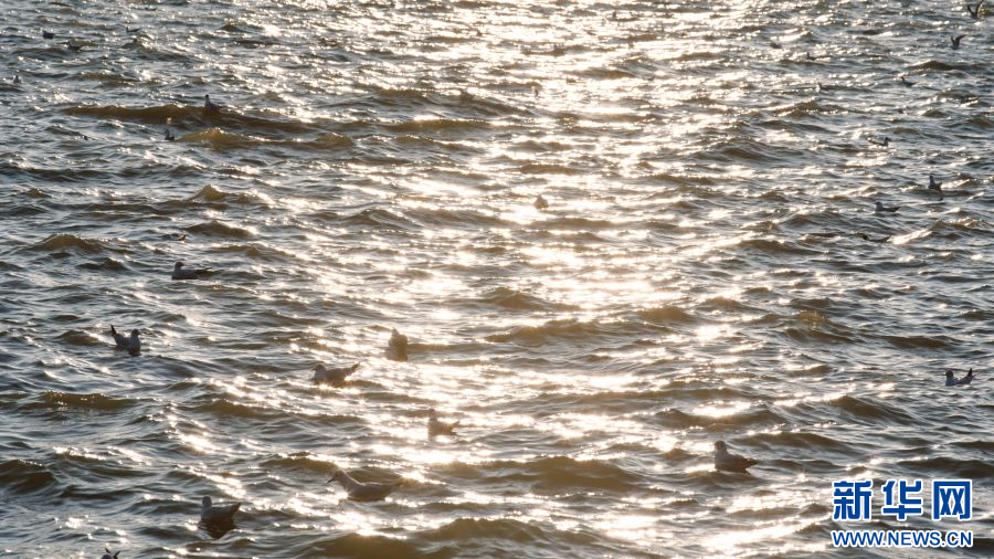 湖面上隨波起伏的紅嘴鷗(2月18日攝)。新華網發(劉東 攝)
