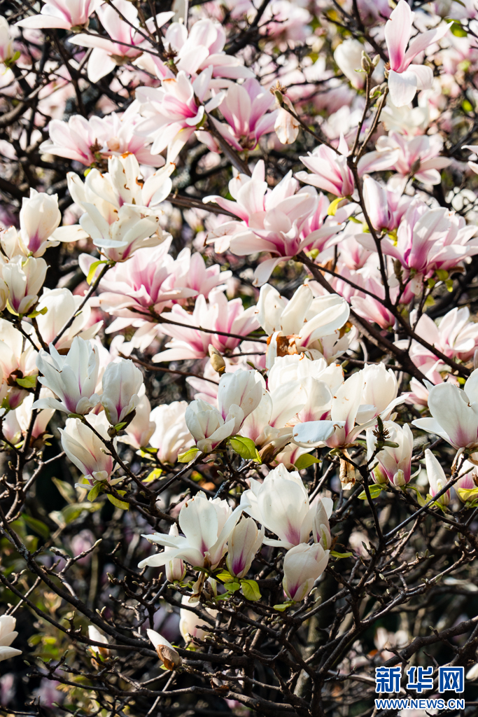 近日,云南省昆明市各處的玉蘭花陸續進入盛放期,不同品種和顏色的玉蘭在春日里次第綻放,美不勝收。