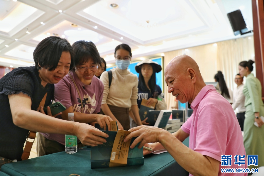 楊潤、徐健斌、楊志軍等人共同為新書《大象》揭幕,傣文書法藝術家艾罕炳向楊志軍和云南教育出版社有限責任公司分別贈送傣文書法作品,楊志軍為現場讀者簽贈圖書。(完)(李寧 和潤仙 和新蘭)