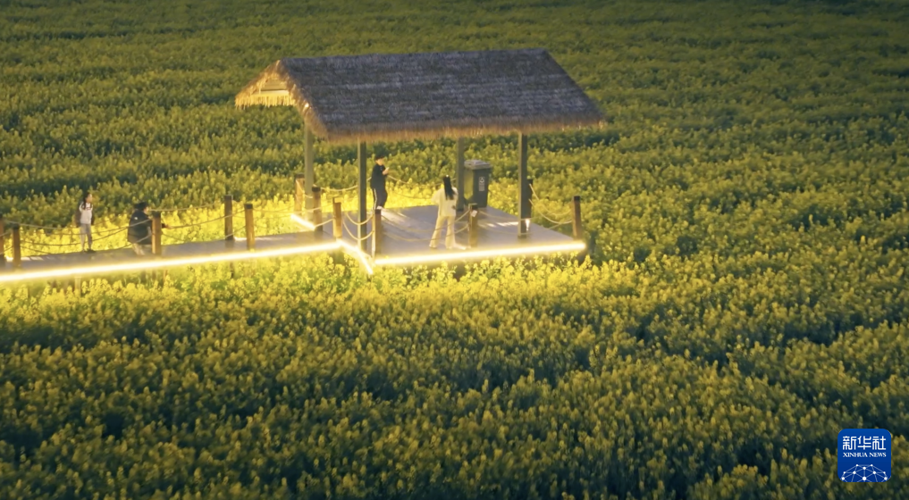 暮色中,花香與月光交織,游人陶醉于大自然的懷抱中,在油菜花的海洋里,尋找心中那一份寧靜與詩意。