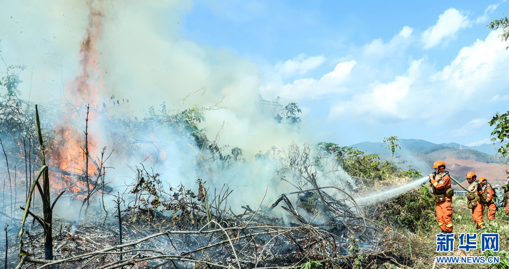 消防員快速接近火線(2月29日攝)。新華網發(路言 攝)