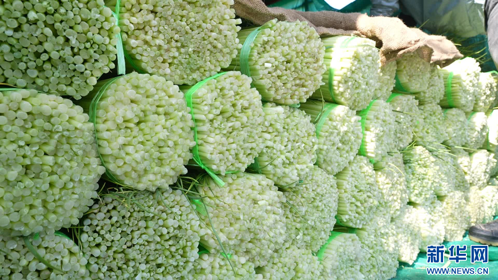 碼放整齊的蒜臺(2月22日攝)。新華網發(賓川縣融媒體中心 供圖)