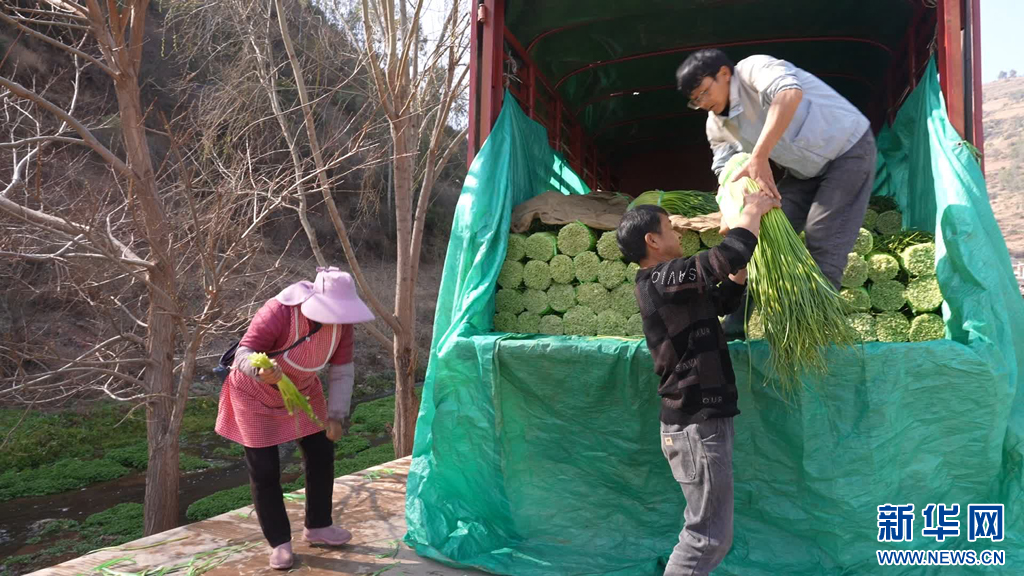 采收貢菜(2月22日攝)。新華網發(賓川縣融媒體中心 供圖)