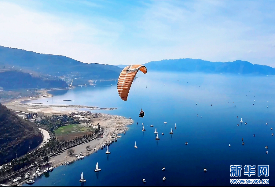 你試過用哪些視角解鎖撫仙湖的獨特美景?天氣漸暖,在云南省澄江市,你可以搭乘滑翔傘乘風而起,換個視角獨賞撫仙湖的“美貌”,像鳥兒一樣飛翔在天空,把湖光山色盡收眼底。(完)(鄭運杰 曹義雄 朱海蓮)