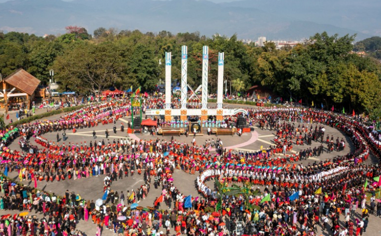 萬人齊舞!云南盈江喜迎目瑙縱歌節