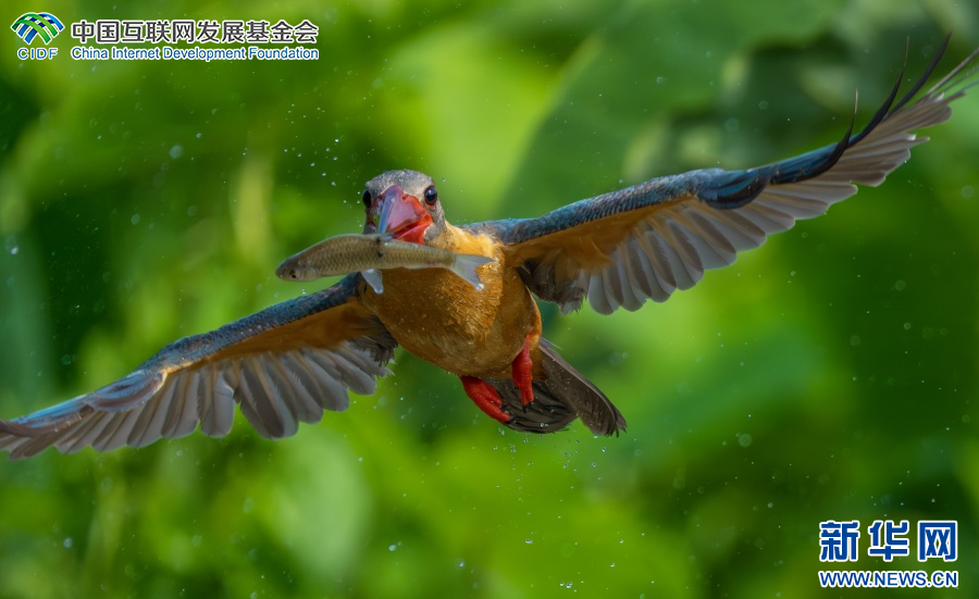 飛翔的鸛嘴翡翠(3月31日攝)。新華網發(高峰 攝)