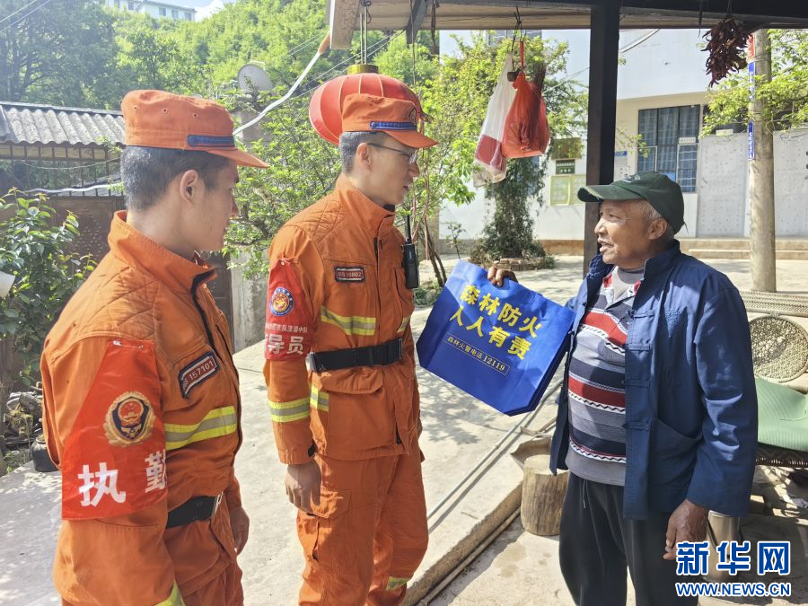 大理州森林消防支隊指戰員為群眾科普防火知識 (4月4日攝)。新華網發(常佳杰 攝)
