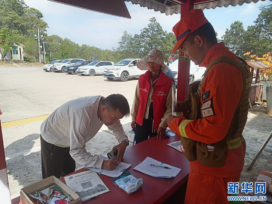 保山市森林消防支隊消防員開展防火登記(4月4日攝)。新華網發(李玉德 攝)