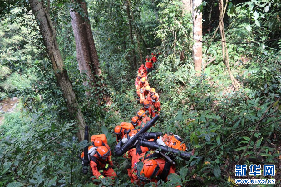 西雙版納州森林消防大隊消防員在林間巡查(4月4日攝)。新華網發(西雙版納州森林消防大隊供圖)