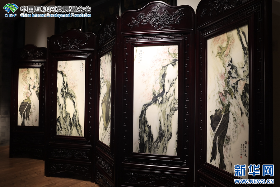 大理石方志館展出的大理石畫(攝于4月3日)。(新華網 趙普凡 攝)