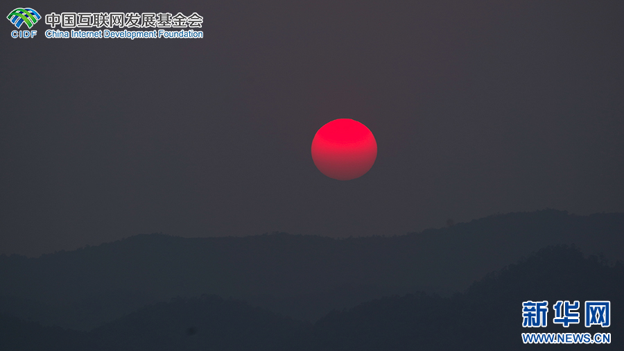 在云南普洱翁基古寨拍攝到的日落(4月1日攝)。新華網發(徐華陵 攝)