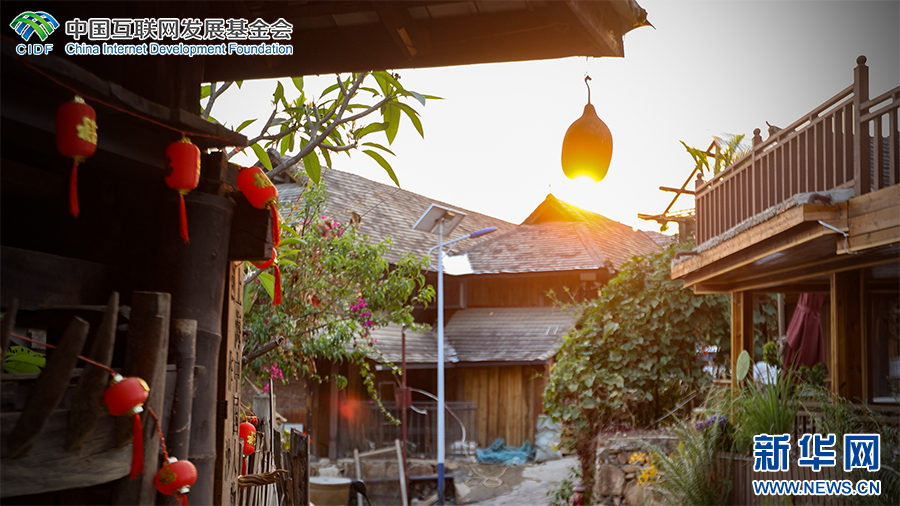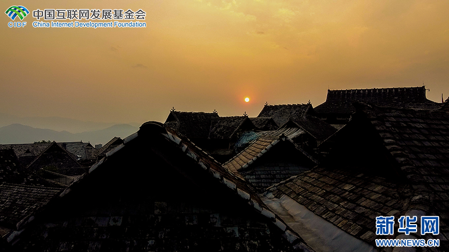 落日余暉下的云南普洱翁基古寨一角(4月1日攝)。新華網發(徐華陵 攝)