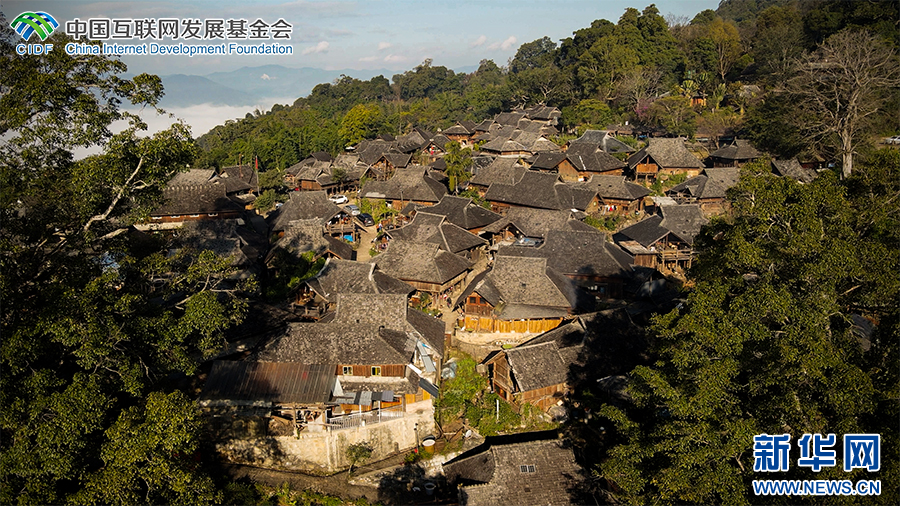 落日余暉下的云南普洱翁基古寨(4月1日攝)。新華網發(徐華陵 攝)