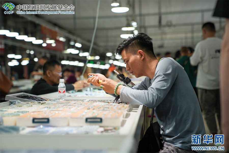 熱鬧的珠寶玉石交易市場(4月2日攝)。新華網發(李浩 攝)