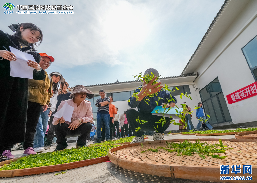 對采摘的茶葉進行篩選評比(3月31日攝)。新華網發(曾三東 攝)