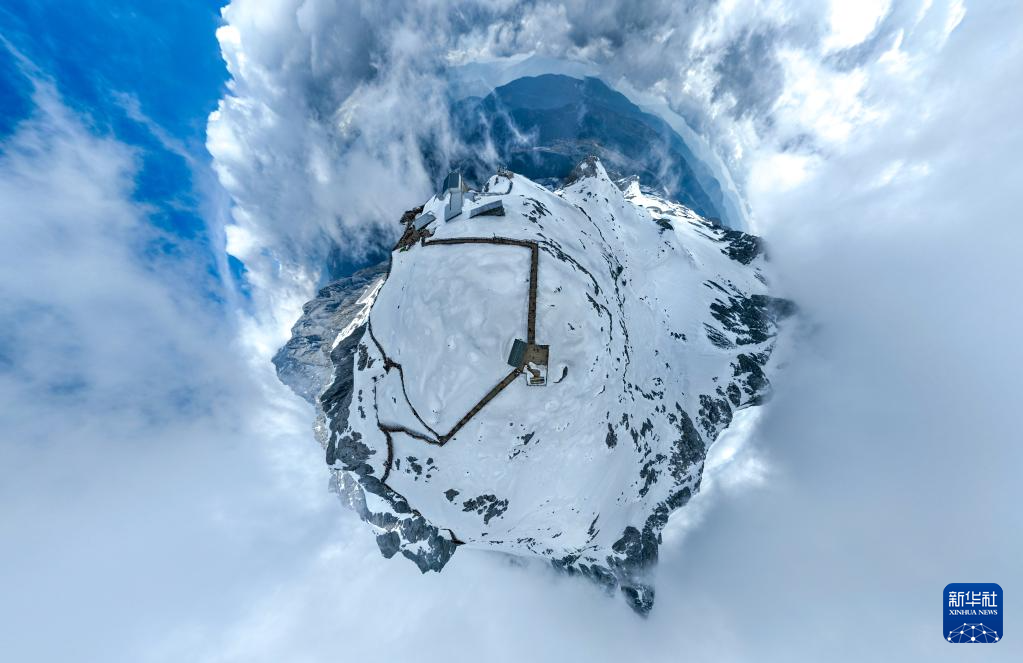 這是3月31日拍攝的玉龍雪山冰川公園(無人機球形全景照片)。新華社發