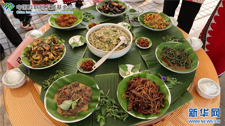 各式各樣的少數民族美食(4月1日攝)。新華網發(瀾滄縣融媒體中心 供圖)