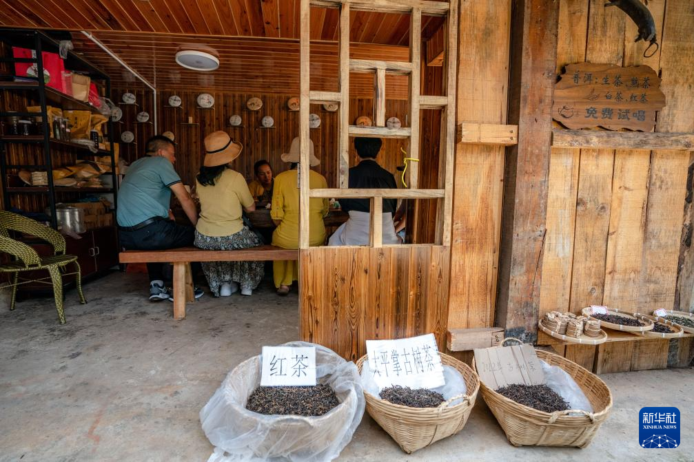 茶農扎約在自家民宿的堂屋里泡上一壺今年的新茶細細品嘗,轉頭看向遠處綿延的群山,享受著難得的愜意時光。