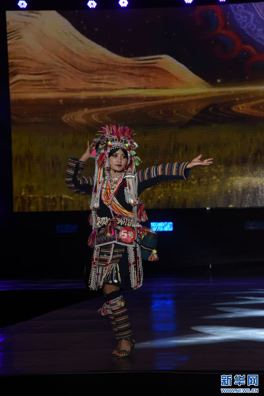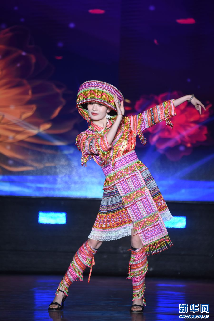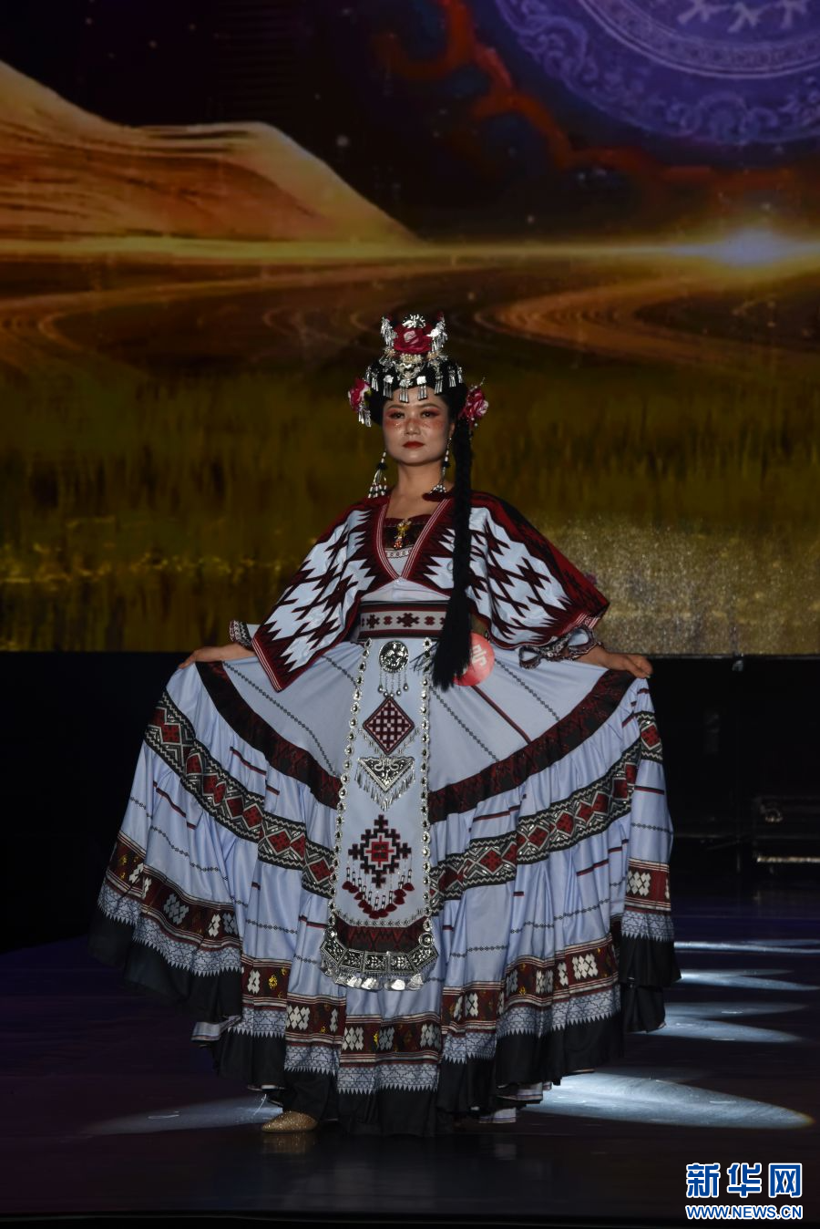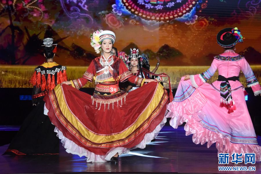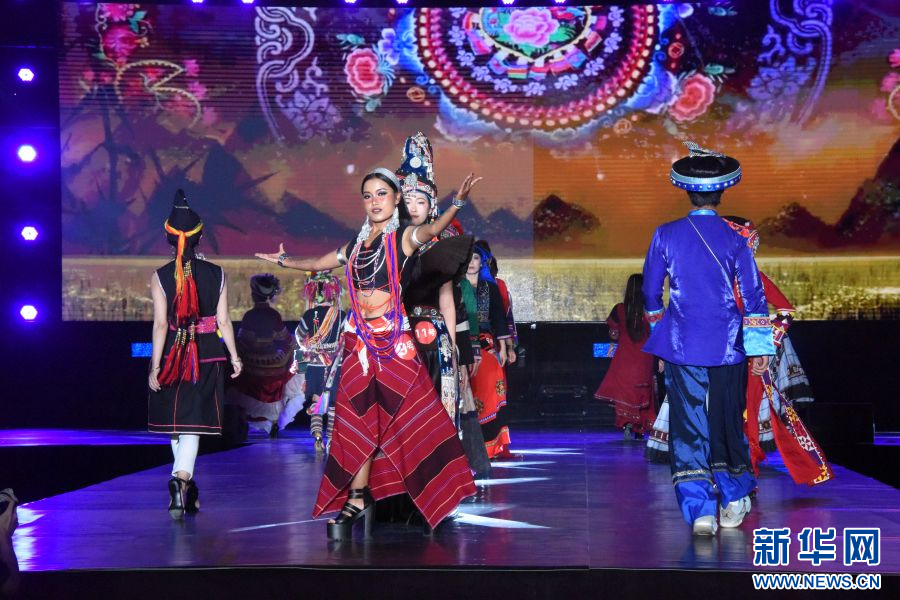 模特展示身上的民族服飾(攝于4月14日)。新華網發(梁穎 攝)