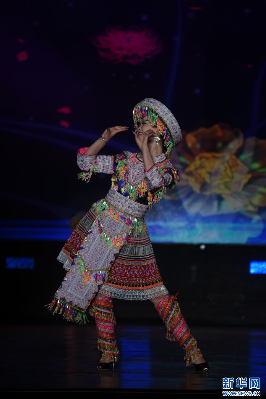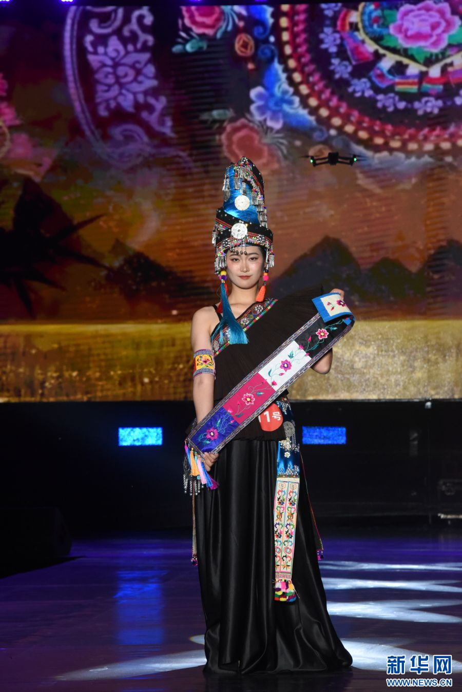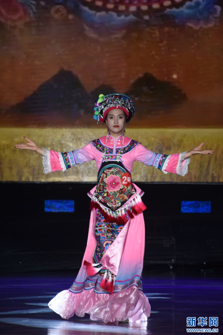 模特展示身上的民族服飾(攝于4月14日)。新華網發(梁穎 攝)