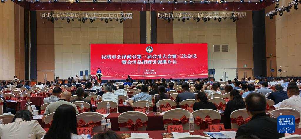 4月14日,昆明市會澤商會第三屆會員大會第三次會議暨會澤縣招商引資推介會在昆明召開。新華社記者浦超 攝