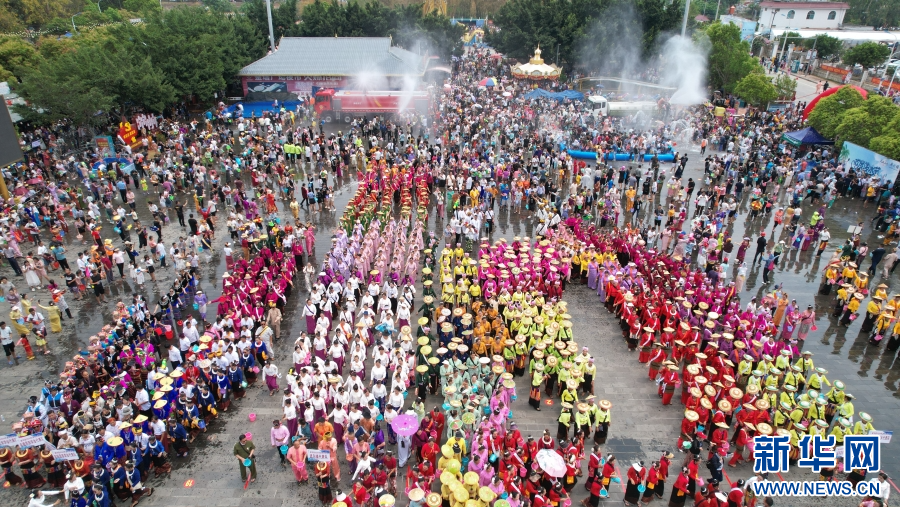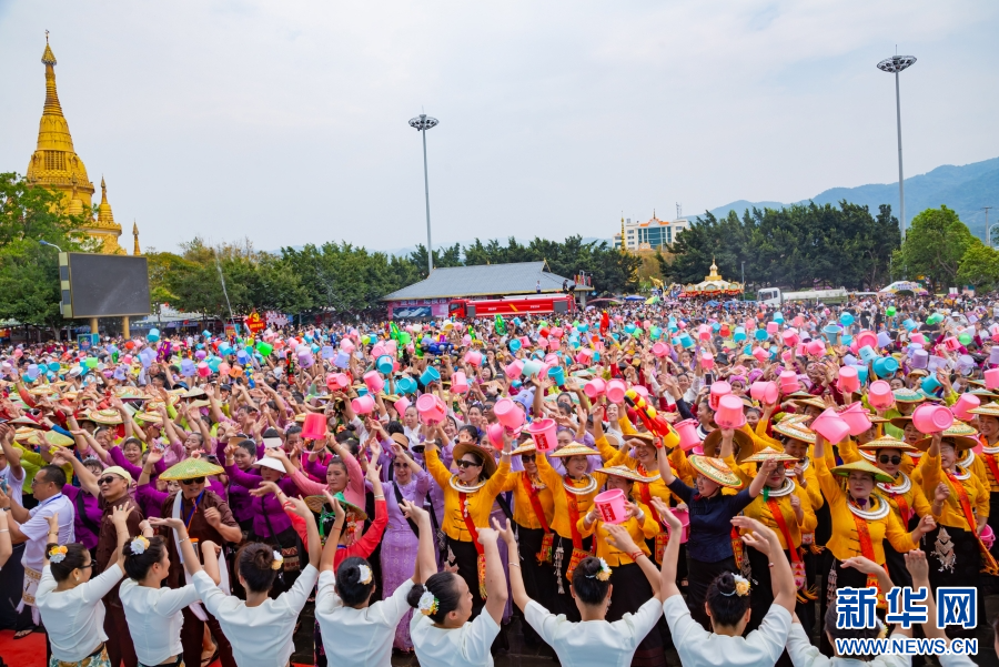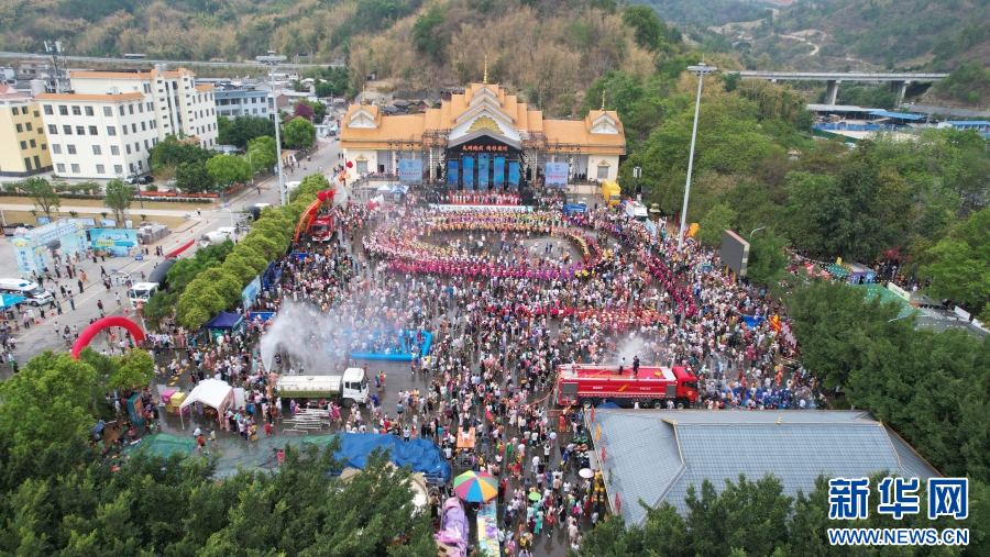 云南德宏梁河各族群眾歡度潑水節(4月12日攝)。新華網發(梁河縣融媒體中心供圖)