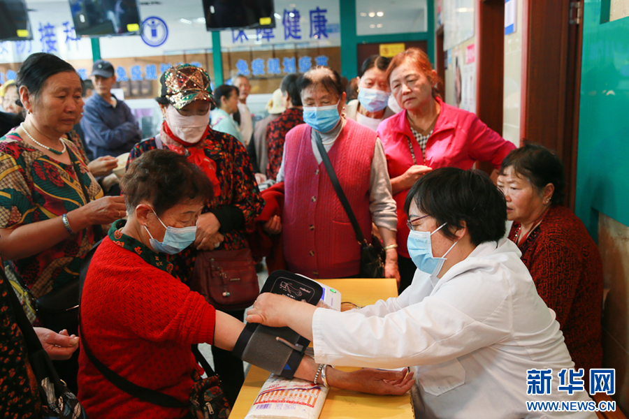 在云南省曲靖市沾益區金龍街道社區衛生服務中心,醫護人員為老年人開展健康評估(4月10日攝)。新華網發(楊俊鵬 攝)