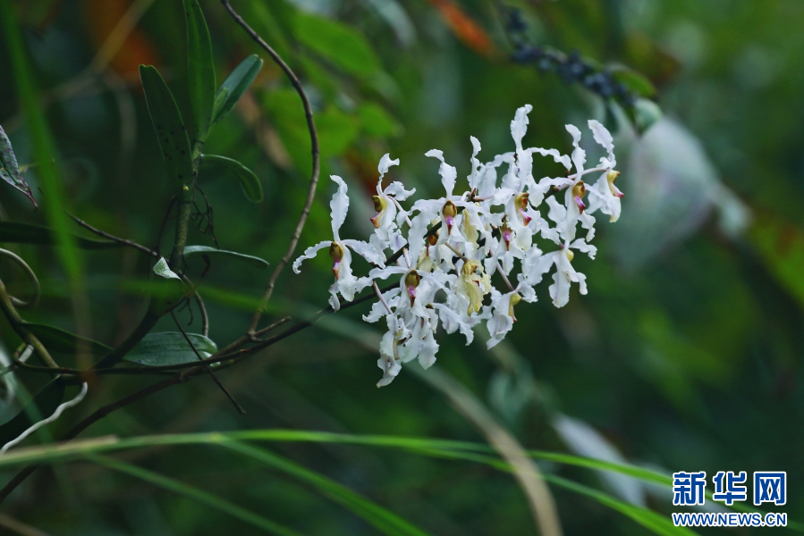 據了解,白花擬萬代蘭花型結構很特別,花序可長達0.5米,其堅挺的莖桿最長超過1米,花朵簇擁開放,宛若飄逸的“空中花籃”。白花擬萬代蘭主要靠氣根和莖葉獲取空氣中的水分和汲取腐葉和動物糞便中的養分來維系生長。(完)(郁云江 楊榮廷 李開平)