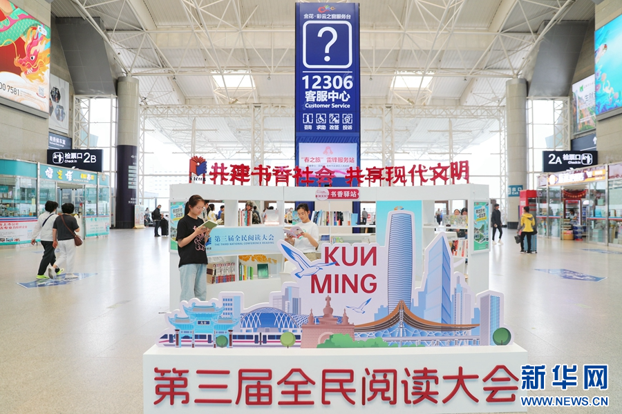 昆明南站書香驛站一角(攝于4月24日)。新華網發(楊紫軒 攝)