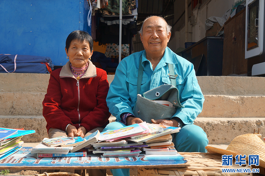 在采訪的最后一天,李存德帶著禹樹芬到集市“擺書攤”,這也是十年來禹樹芬第一次放下手頭的事,來幫老伴擺書收書?!拔蚁胝埬銕臀覀兣膫€合照,既是想讓村民知道我老伴是誰,也想告訴大家,這些年的付出,是因為有她在背后支持?!崩畲娴抡f。(完)