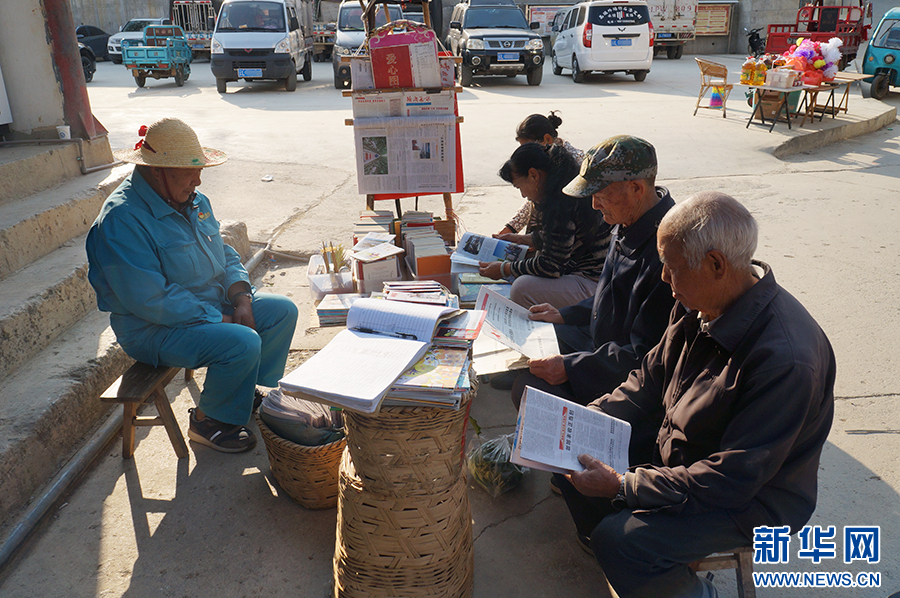 村民圍在書攤前看書(4月7日攝)。新華網 范芳鈺 攝