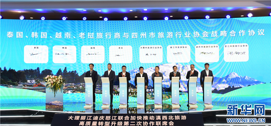 當日,大理州、麗江市、迪慶州、怒江州簽訂了滇西北四州市旅游戰略合作框架協議,泰國、韓國、越南、老撾旅行商與四州市旅游行業協會簽訂了戰略合作協議。(完)