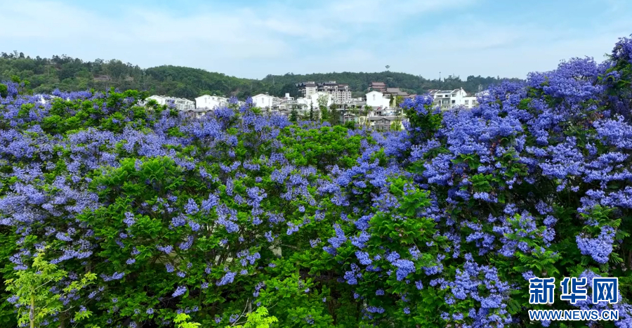 云南省楚雄州永仁縣,藍花楹綻放(4月26日攝)。新華網發(永仁縣融媒體中心供圖)