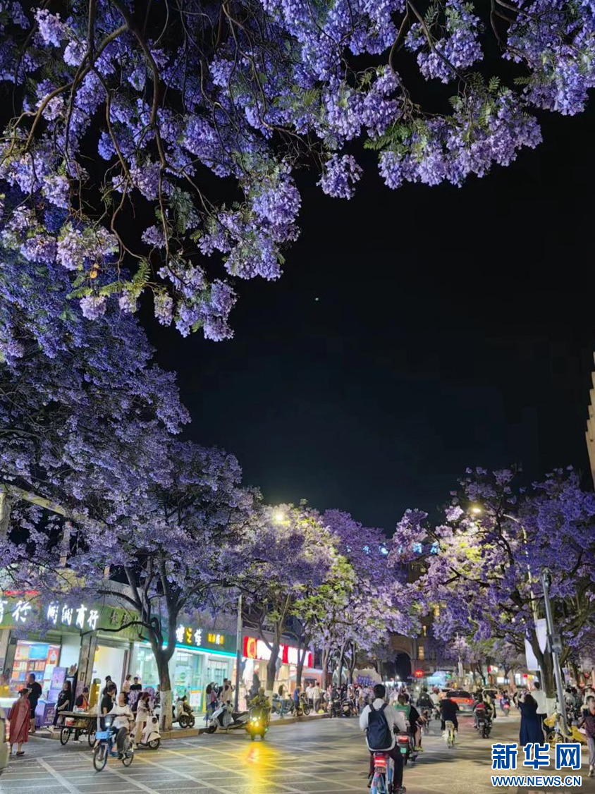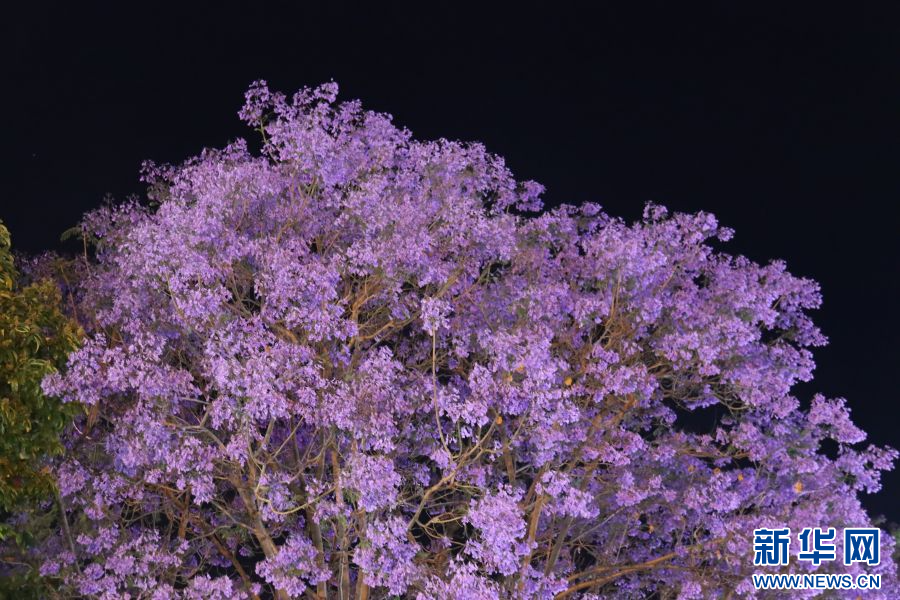 在云南省昆明市,夜幕下的藍花楹(4月24日攝)。新華網發(鄭益 攝)
