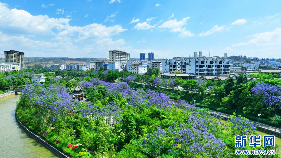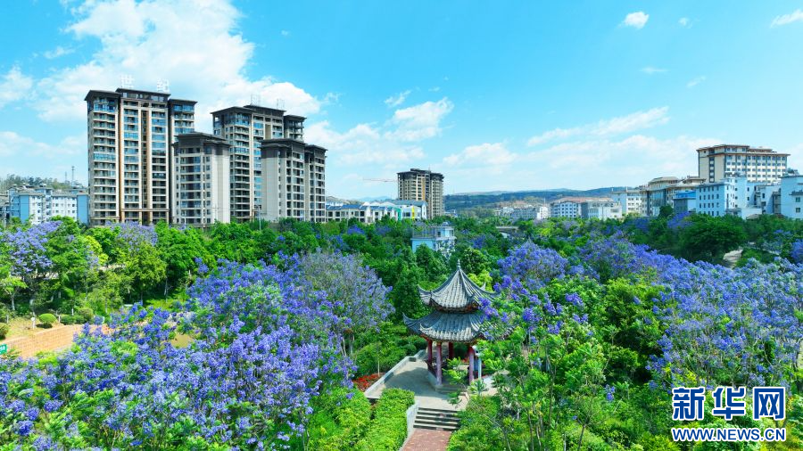 云南省楚雄市藍花楹盛放(4月25日攝)。新華網發(楚雄市融媒體中心供圖)