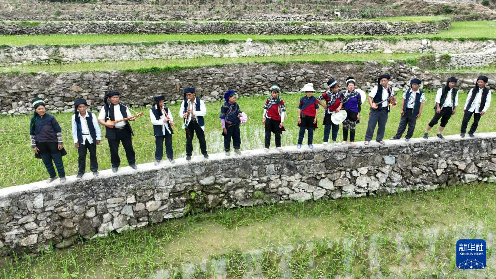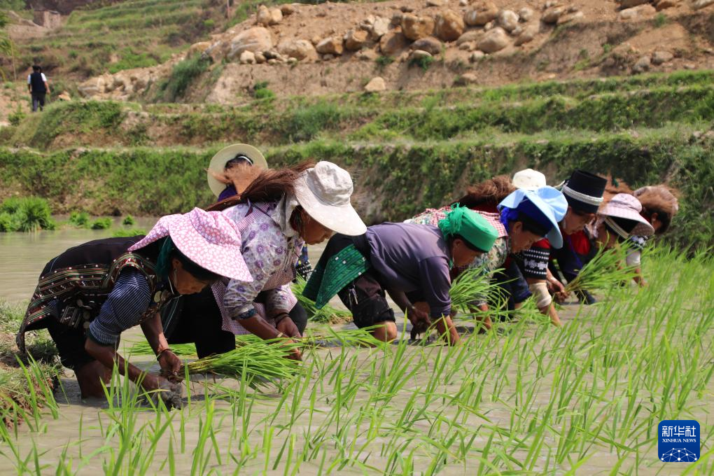 歌聲在梯田間飄蕩,村民們懷著歡快的心情拔秧、插秧……一排排蔥綠的秧苗整齊地排列于田間,微風吹過,秧苗輕輕搖擺,蕩漾起無限生機。