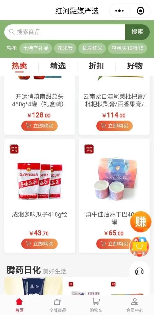 “云南紅河發布”客戶端“商城”版塊頁面。