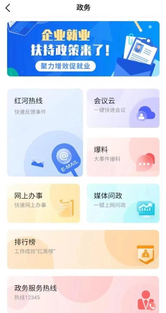 “云南紅河發布”客戶端“政務”版塊頁面。