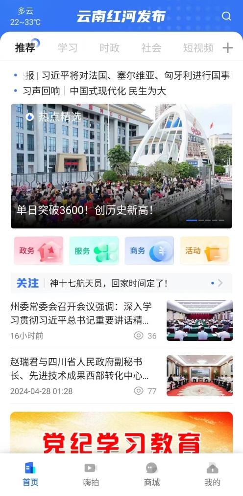 創新推出社交與網購功能,融合新聞、政務、服務和商務四大板塊的融媒平臺——“云南紅河發布”客戶端30日正式改版上線。